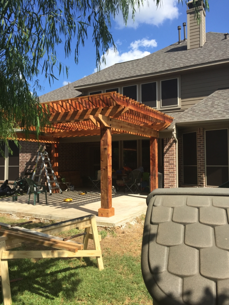 IG Remodeling recently completed a Cedar Pergola in Spring, TX, designed to enhance both beauty and functionality in the client’s backyard. We build premium structures using 8×8 cedar columns, 2×12 beams in both directions, 2×8 rafters, and 2×2 lattice spaced 6″ O.C.—creating the perfect mix of shade, strength, and style.