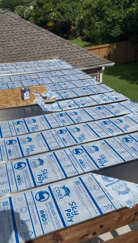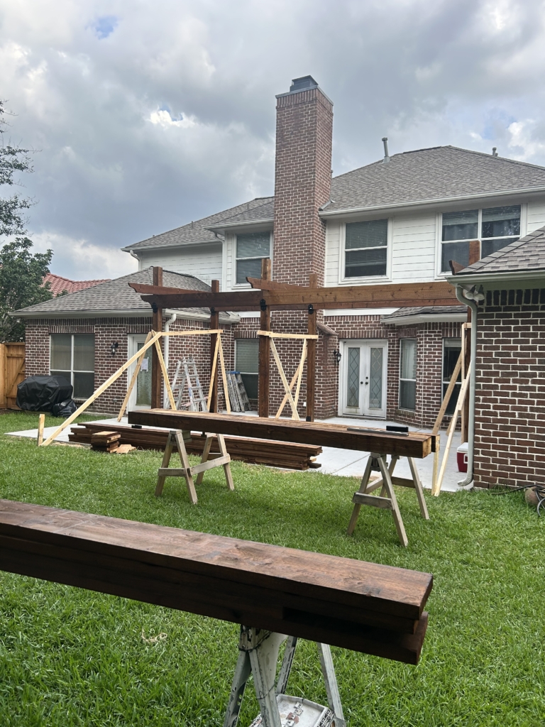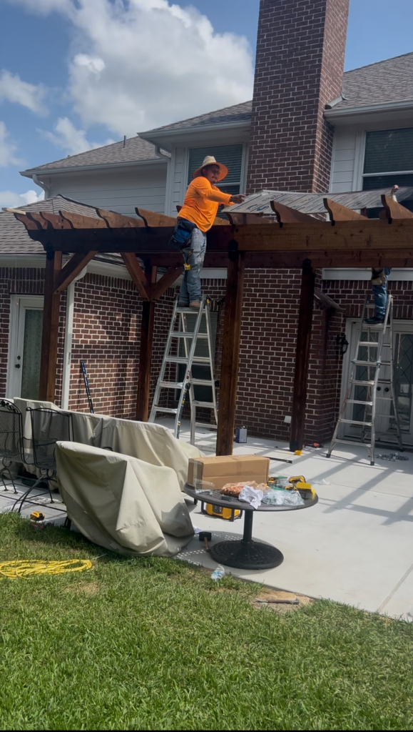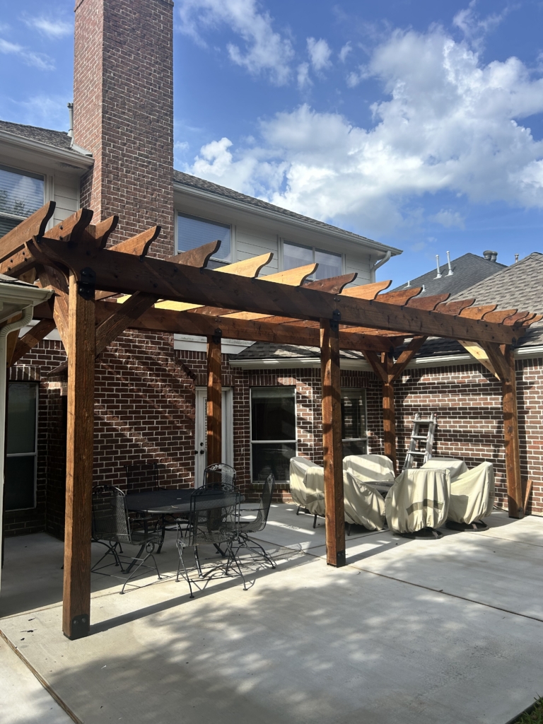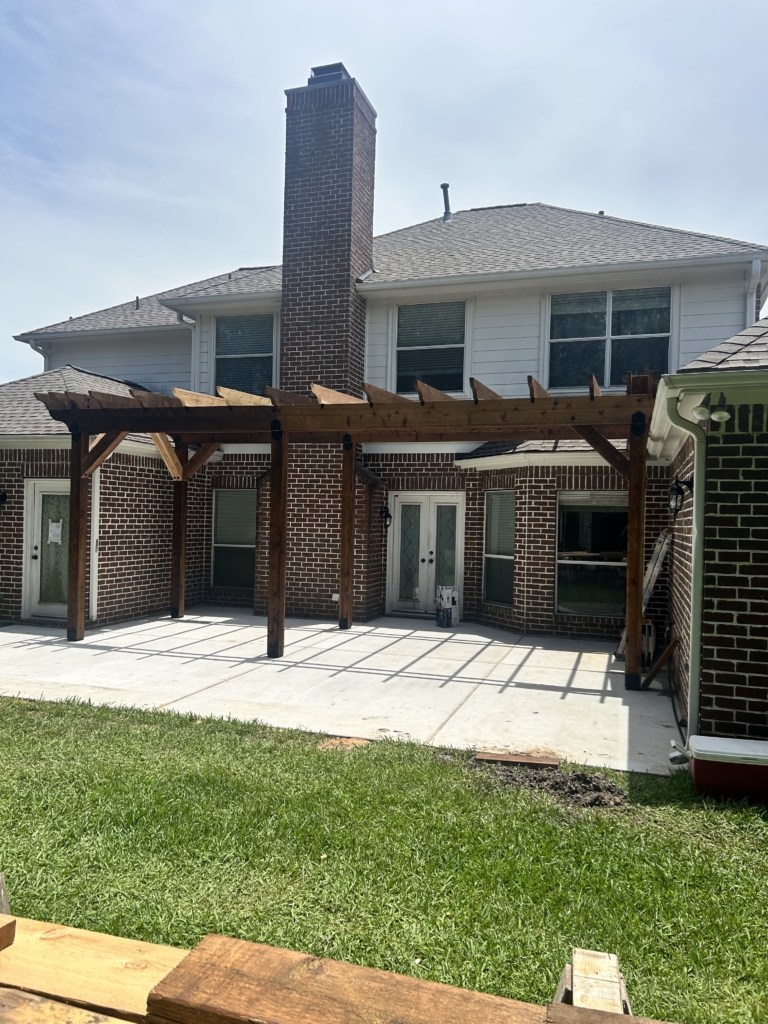 IG Remodeling recently completed a Custom Cedar Pergola with Hercules Poly Roof System in the Memorial Area, designed as a detached structure for maximum flexibility. The Hercules roof panels are wind-rated up to 125 MPH and filter natural light while blocking UV rays and rain. Attached securely to the home’s siding wall and fireplace with waterproof metal flashing, this system combines strength and transparency for year-round use.